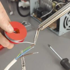 Im Lieferumfang enthalten ist auch ein 5-teiliges Zubehörset mit Massekabel mit -klemme, Schweißkabel mit Elektrodenhalter, Hammer/Bürste, Schweißmaske sowie 250 g Fülldraht.