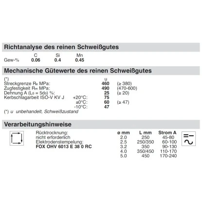 Die mit Rutil-Cellulose umhüllte Böhler Stabelektrode mit sehr guter Verschweißbarkeit in allen Positionen, auch senkrecht fallend, ist als Universalelektrode besonders für Kleintransformatoren geeignet. Des Weiteren überzeugt sie durch eine biegbare Hülle, einen sehr stabilen Lichtbogen und ist im Stahl-, Fahrzeug-, Kessel-, Behälter- und Schiffbau vielseitig verwendbar.