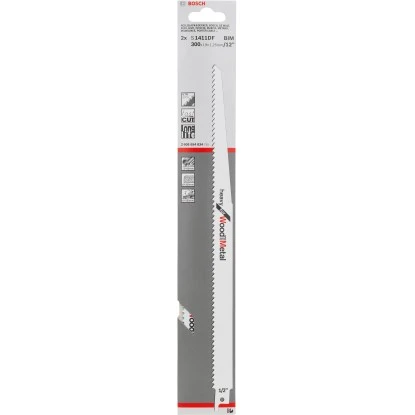 Das Bosch Säbelsägeblatt Pro S 1411 DF Heavy for Wood and Metal ist für Holz mit Nägeln/Metall, Spanplatten (< 250 mm) und GFK/Epoxy (< 60 mm) geeignet.