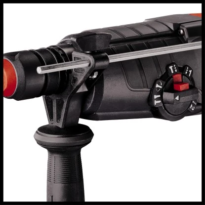 Den Einhell TE-RH 950 5F Bohrhammer können Sie individuell auf die Gegebenheiten der jeweiligen Arbeit abstimmen, um ein sauberes Ergebnis zu erhalten. Mit einer Leerlaufdrehzahl von 0 – 1.200/min (Umdrehungen) ist die Maschine für vielfältige Bohr- und Schraubarbeiten rund um Haus und Garten bestens geeignet. Der Links-/Rechts-Lauf ermöglicht es Ihnen, die Drehrichtung des Aufsatzes je nach Anwendung einstellen. Der maximale Bohrdurchmesser beträgt 28 mm in Beton. Durch den integrierten Tiefenanschlag vermeiden Sie, versehentlich zu tief zu bohren, da Sie die gewünschte Bohrtiefe individuell einstellen können.