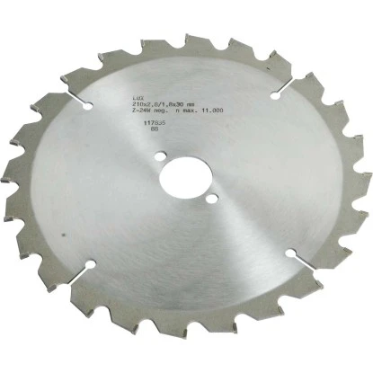 Das ELLIX HM-Kappsägeblatt mit Ø 210 mm und einer 30 mm eignet sich für Längs- und Querschnitte in Holz. Zudem verfügt das Sägeblatt über 24 Hartmetallzähne.