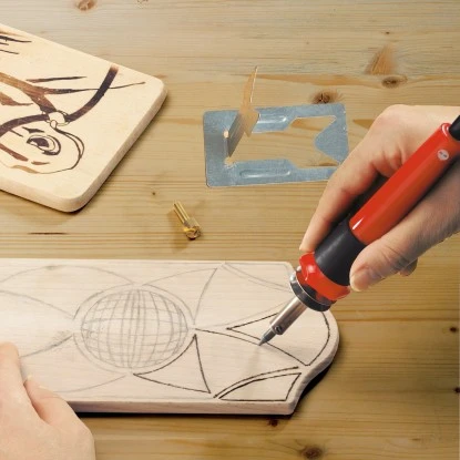 Das LUX-TOOLS Brandmal-Set 30 W eignet sich für alle Brandmalarbeiten und erreicht eine Spitzentemperatur von ca. 380 °C.
