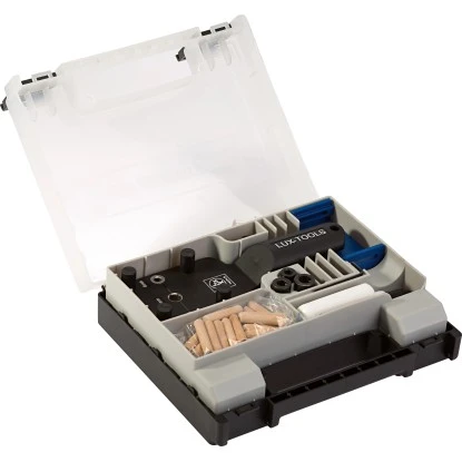 Mit der umfangreichen LUX-TOOLS Holzdübelbox erhalten Sie ein Komplett-Set zur schraubenlosen Holzmontage. Neben verschiedenen Dübelgrößen beinhaltet es viel praktisches Zubehör, das in der übersichtlichen Aufbewahrungsbox griffbereit zur Verfügung steht. Das Material bietet Ihnen eine zuverlässige Qualität für den Heimwerkerbereich. Hergestellt sind die Dübel aus Buchenholz. Das natürliche Material zeichnet sich durch seine hohe Haltbarkeit und Widerstandsfähigkeit aus. Sie besitzen eine längsgeriffelte Oberfläche, wodurch sich der Leim gleichmäßig verteilen kann. Das Set enthält Holzdübel mit Ø von 6 mm – 10 mm und Längen von 30 mm- 40 mm, sodass die gängigen Größen vorhanden sind. Der Dübelkoffer beinhaltet außerdem drei Holzbohrer mit Zentrierspitzen, die eine hohe Genauigkeit beim Lochbohren ermöglichen. Darüber hinaus ist eine Dübellehre dabei, damit Sie die benötigten Löcher absolut senkrecht und im gleichmäßigen Abstand bohren können. Zudem sorgt sie für Passgenauigkeit mit dem Gegenstück. Mit den Abstandshaltern in verschiedenen Weiten erhalten Sie zudem optimale Bohrtiefen.