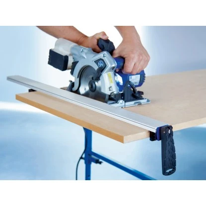 Die LUX-TOOLS 4-in-1 Sägeschiene ist zugleich Säge-Führung und Lineal mit integrierten Klemmhaltern zum Spannen und Schneiden in einem Arbeitsablauf. Die Sägeschiene beinhaltet einen einfach zu bedienenden Handhebel-Spannmechanismus mit variablen Gelenkköpfen bis zu einem Winkel von 22,5°. Die Sägeschiene hat ein verwindungssteifes Aluminiumprofil, welches 30 % leichter als Schienen aus Metall ist. Durch die Spannbacken mit Softeinlagen werden Beschädigungen des eingespannten Gegenstandes verhindert. Die Gesamtlänge der Sägeschiene beträgt 101,7 cm, die Spannweite 75,0 cm.
