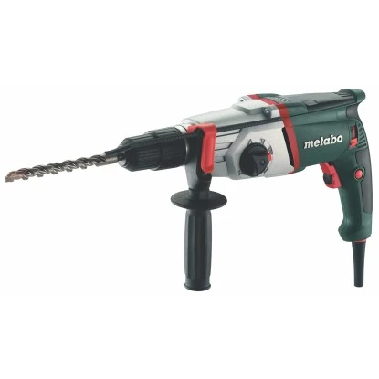 Der Multihammer eignet sich für alle Einsatzwerkzeuge mit SDS-plus-System oder mit zylindrischem Schaft. Die Drehzahl lässt sich mit einem Stellrad einfach vorwählen. Der Metabo Bohrhammer UHE 2250 Multi verfügt sowohl über einen Schlagstopp zum Bohren ohne Schlag und einen Drehstopp zum Meißeln, als auch einen Rechts-Linkslauf. Das Bohrfutter lässt sich mit dem Metabo „Quick“-Wechsel schnell und einfach austauschen. Er überzeugt mit einem langlebigem und robusten Hochleistungsschlagwerk, präzisionsgelagert in einem Aluminium-Gehäuse. Zudem ist der Metabo Bohrhammer UHE 2250 Multi mit einer Sicherheitsrastenkupplung zur optimalen Begrenzung des ruckartig auftretenden Rückdrehmoments, das z. B. beim Verklemmen oder Verhaken des Einsatzwerkzeuges auftritt, und einem Handgriff mit Gummibeschichtung zur Vibrationsreduzierung ausgestattet. Eine kabelschonende Kugeltülle ermöglicht Ihnen optimale Bewegungsfreiheit in jeder Arbeitssituation.