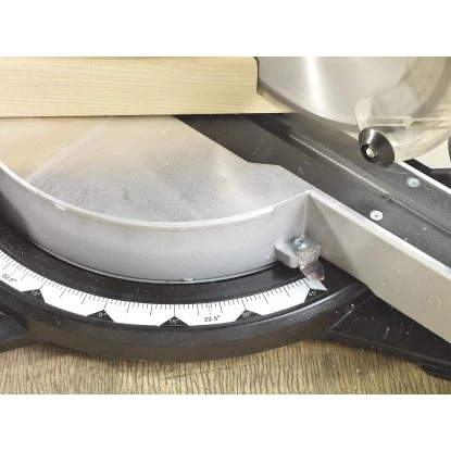 Die Metabo Kapp- und Gehrungssäge KGS 216 M besitzt eine Zugfunktion für breite Werkstücke und eignet sich ideal zum Sägen von Holz, beschichteten Paneelen und Kunststoffen. Ergonomisch erfüllt sie mit einer rutschfesten Gummierung an Hand- und oberem Tragegriff sowie seitlichen Tragegriffen alle Wünsche. Eine Transportsicherung und eine Kabelaufwicklung sind ebenfalls vorhanden. Die Tischverbreiterung ist auf beiden Seiten stufenlos ausziehbar und mit einer praktischen Auflagefläche sowie einem integrierten Ablänganschlag ausgestattet. Das Arbeiten mit der Metabo Kapp- und Gehrungssäge KGS 216 M wird Ihnen zudem durch integriertes Arbeitslicht, eine Schnitttiefenregulierung und eine Sägeblattarretierung zum einfachen Sägeblattwechsel vereinfacht. Ein Laser dient zur exakten Anzeige des Schnittes und der Spänefangsack sorgt für saubere Luft am Arbeitsplatz.